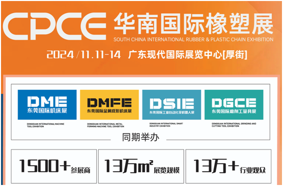 2024年11月11日-14日,由華墨集團(tuán)主辦的CPCE華南國(guó)際橡塑展將在廣東現(xiàn)代國(guó)際展覽中心(東莞厚街)重磅亮相。
