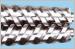 錐雙平雙螺桿機筒 1.材質(zhì):38CrMoAI A 氮化處理,表面硬度:HV≥900 氮化層深度:0.5-0.8mm 2.材質(zhì):基材38CrMoAI A,螺棱表面采用鎳基合金粉澆焊,有效的提高了螺桿的壽命。 3.材質(zhì):基材38CrMoAI A,料口易