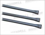 整體釬是將釬頭、釬桿、釬尾合為一體制造的釬具,其優(yōu)點(diǎn)是:消除了錐形釬具連接處能量損耗,工作效率高;消除了釬頭丟失現(xiàn)象。它的使用范圍就是錐形釬的適用范圍,并延伸到風(fēng)鎬釬二次破碎巖石范圍。當(dāng)頭部合金片正常報(bào)廢后可切頭作錐形釬使用。通常整體釬用于地下開采和小孔鉆進(jìn),配合小功率的鑿巖機(jī)如氣腿式或手持式等使用。它能有效降低沖擊能量的損耗,提高鉆進(jìn)的速度和效率。當(dāng)巖石較軟、易鑿巖時(shí),使用整體釬可大大提高鑿巖速度。整體釬通常適用于鉆進(jìn)直徑為24毫米至44毫米的孔。